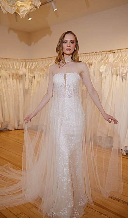 Vakko-Cape Detailed Plain Wedding Dress
