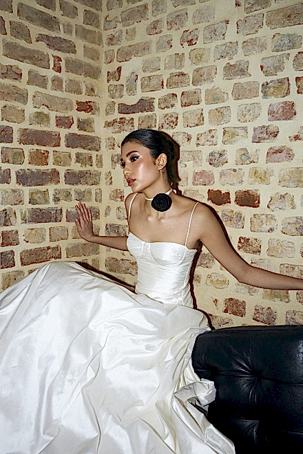 Valentine, a simple wedding dress model of Hello Bride brand, designed with silk Dupion fabric.