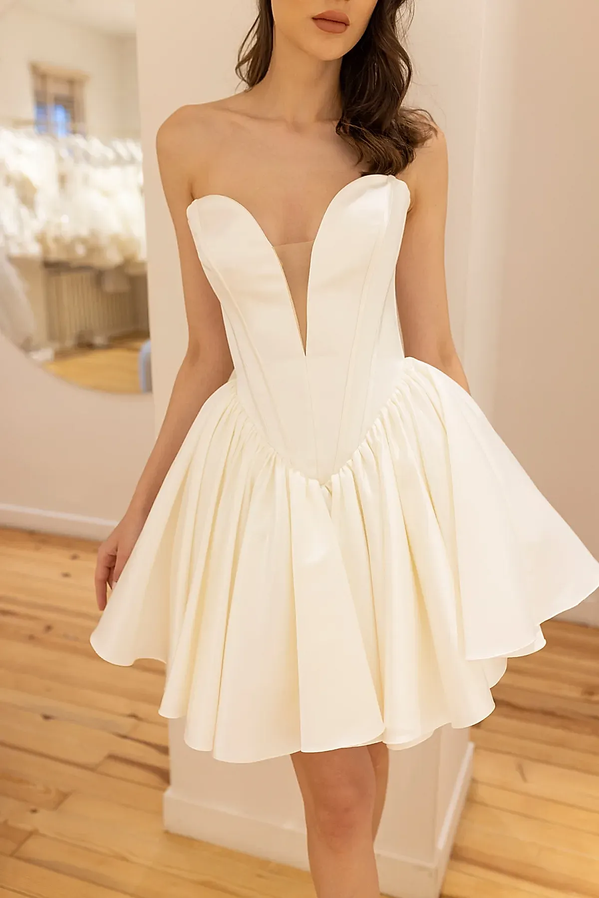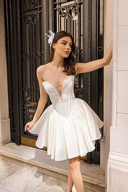 Ürün Özellikleri Straplez , kalp yakalı, balenli üst beden, göğüs dekolteli .mini boy