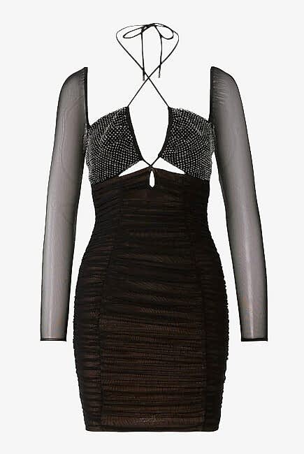 Self Portrait markasına ait , siyah mini taş detaylı abiye elbise Rent is the new chic te kiralıktır.