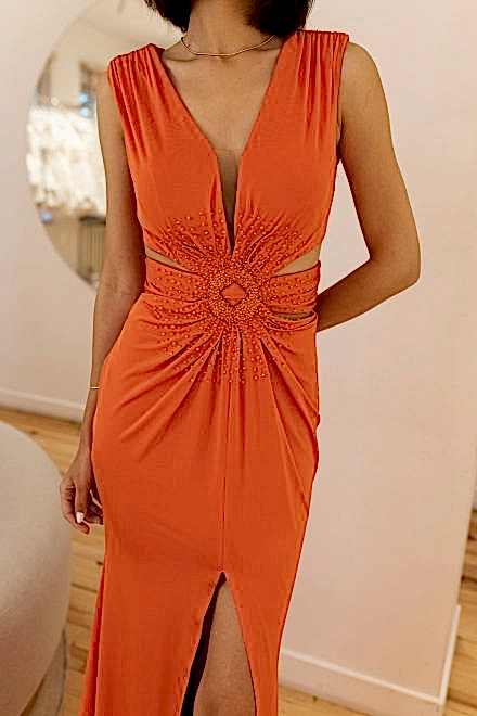 Ürün Özellikleri | V yakalı, Beli dekolteli,Kemer detaylı,Yırtmaçlı |